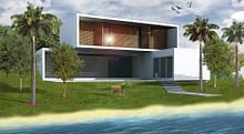 A casa foi então concebida com a intenção de se integrar ao terreno sem agredir a paisagem, fazendo uso de formas puras e materiais uniformes. Tratam-se de três volumes básicos que evidenciam também suas funções: o bloco social, com salas de estar, jantar e áreas de convivência, o bloco íntimo, com os dormitórios e seus banheiros, e o bloco de serviços, composto por cozinha, área de serviço lavabo e garagem. Sua disposição valoriza ainda um dos artifícios do projeto: o jogo de luz e sombra.